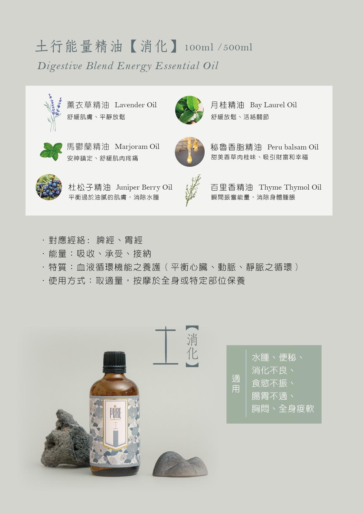 土行能量精油 -消化系統能量養護(脾、胃、肌肉、消化系統)