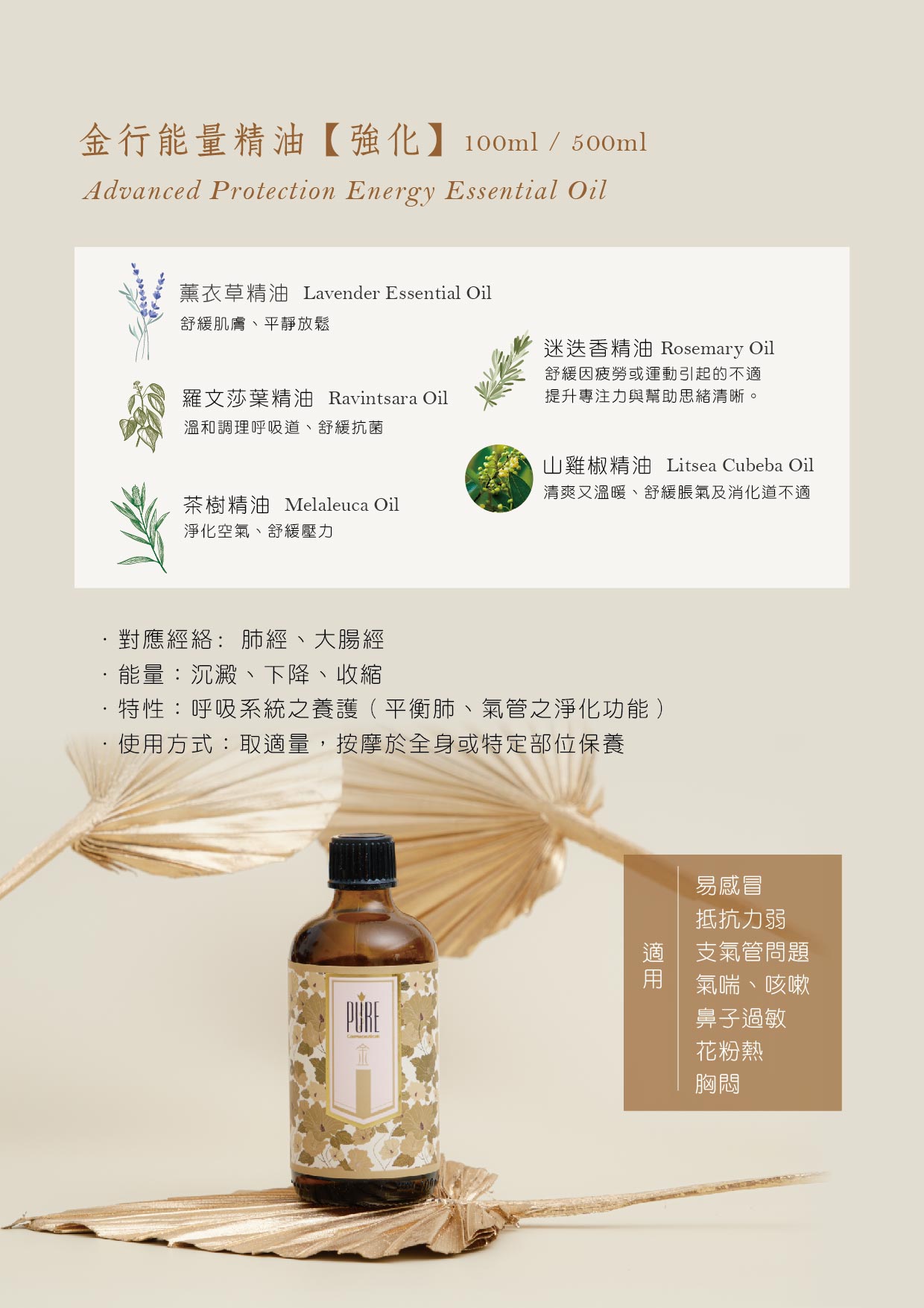 金行能量精油 - 呼吸免疫系統機能養護(肺、汗孔、扁桃腺)
