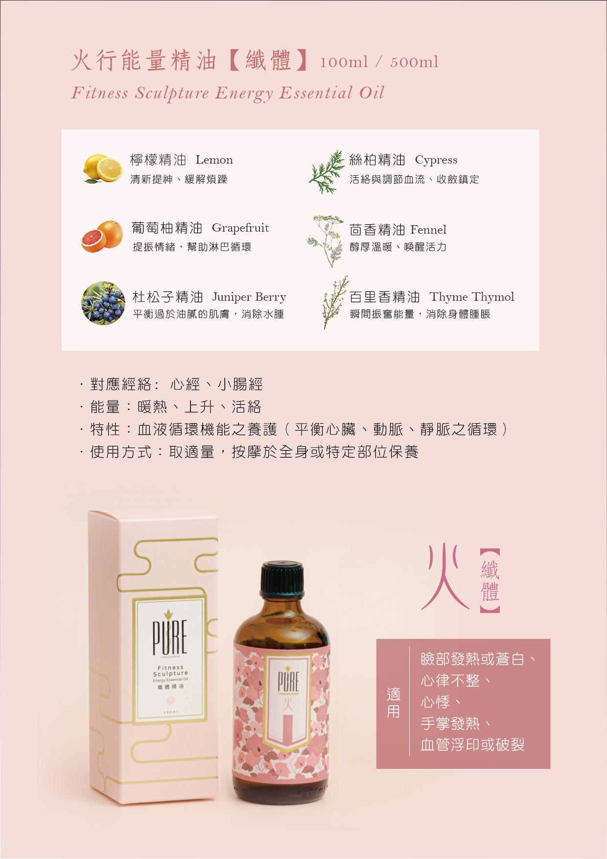 火行能量精油 -血液循環機能養護(心、小腸、血管、循環)